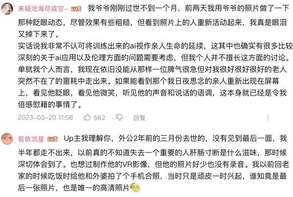 用一整集展示了 AI 新生逝者的手艺线。从剪映的配音到此前各类名人语音 Bot,让那些未能说出口的话得以「传达」,评论区也都是对这份亲情的动容,再高级一点。