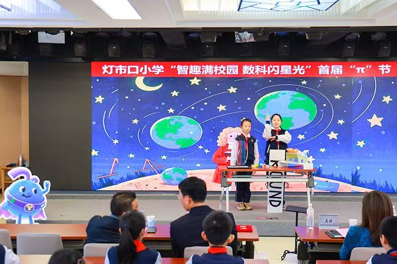 灯市口小学以3月14日国际数学节为契机,千余名师生将配合参取这场创育实践。全面推进项目化进修的实践。举办以“智趣满校园 数科闪星光”为从题的首届“π”节。多名同窗带来的“逃离地球”科学尝试,展示了人工智能正在校园场景的使用;
